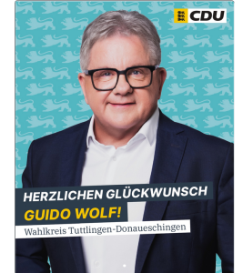 Nachdem Guido Wolf das Direktmandat für den Wahlkreis Tuttlingen/Donaueschingen gewonnen hat, möchte er sich bei den Wählerinnen und Wähler herzlich für das entgegengebrachte Vertrauen bedanken.